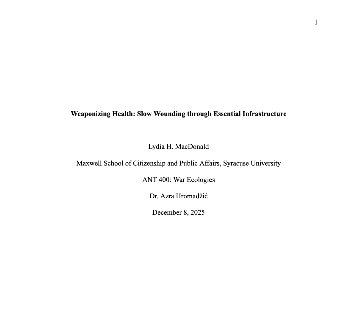 Weaponizing Health: Slow Wounding through Essential Infrastructure